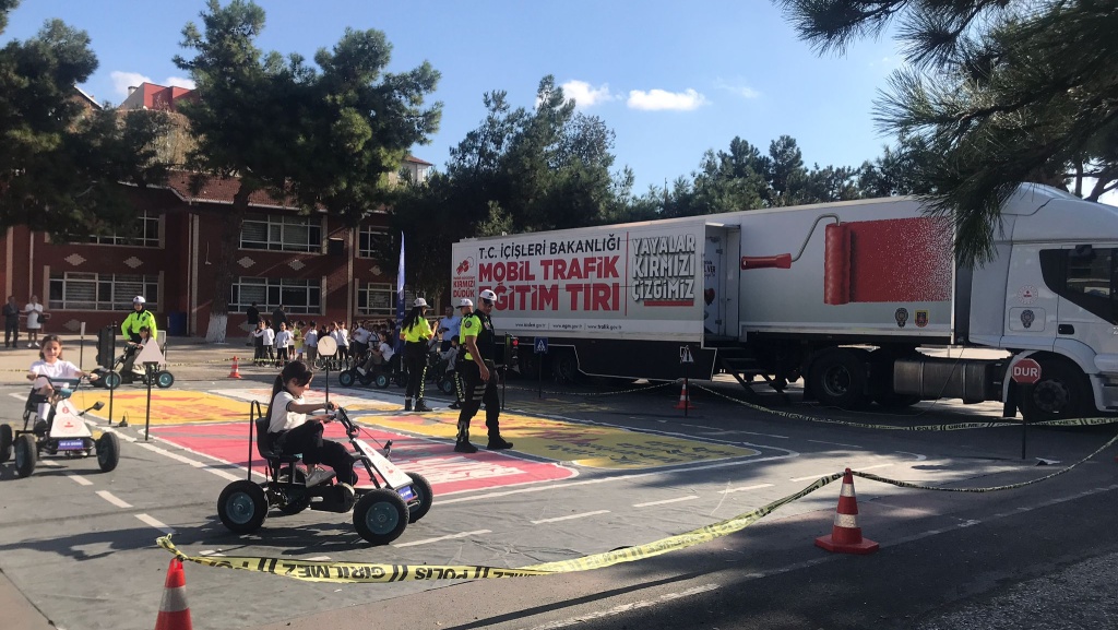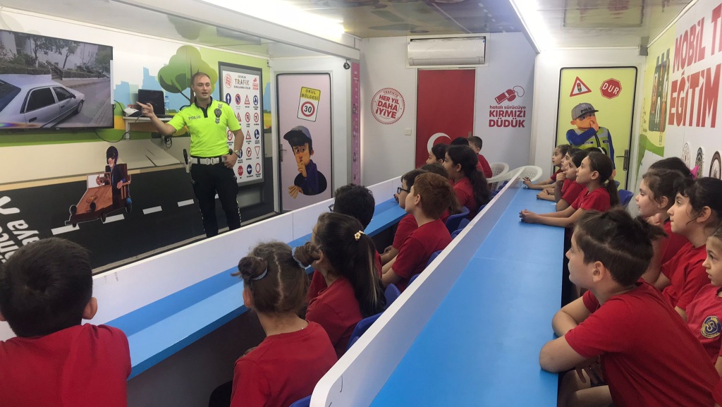 Öğrencilerimizin trafik konusundaki farkındalığının geliştirilmesi amacıyla İçişleri Bakanlığınca başlatılan proje kapsamında "Mobil Trafik Eğitim Tırı" okulumuzda öğrencileirmize uygulamalı eğitim verdi.